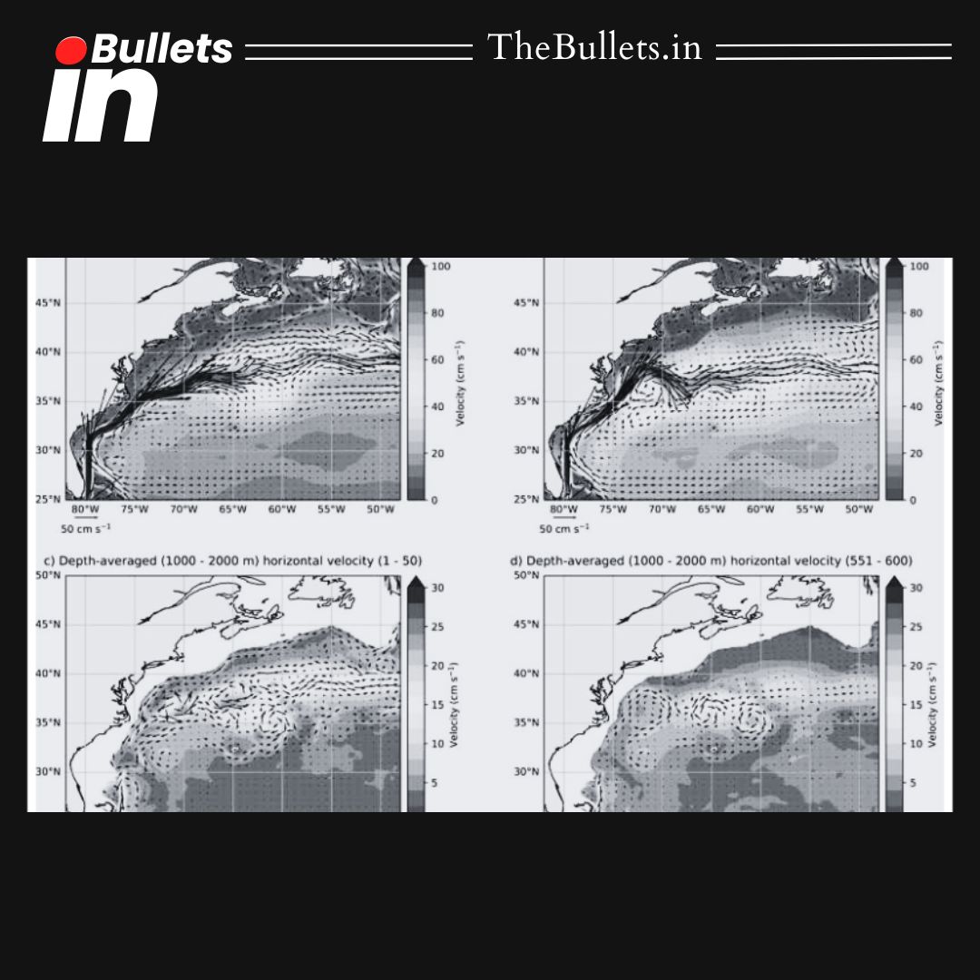 - गल्फ स्ट्रीम के नीचे बहने वाली गहरी पश्चिमी सीमा धारा के कमजोर होने के संकेत भी महासागरीय प्रवाह तंत्र में बदलाव दर्शाते हैं।